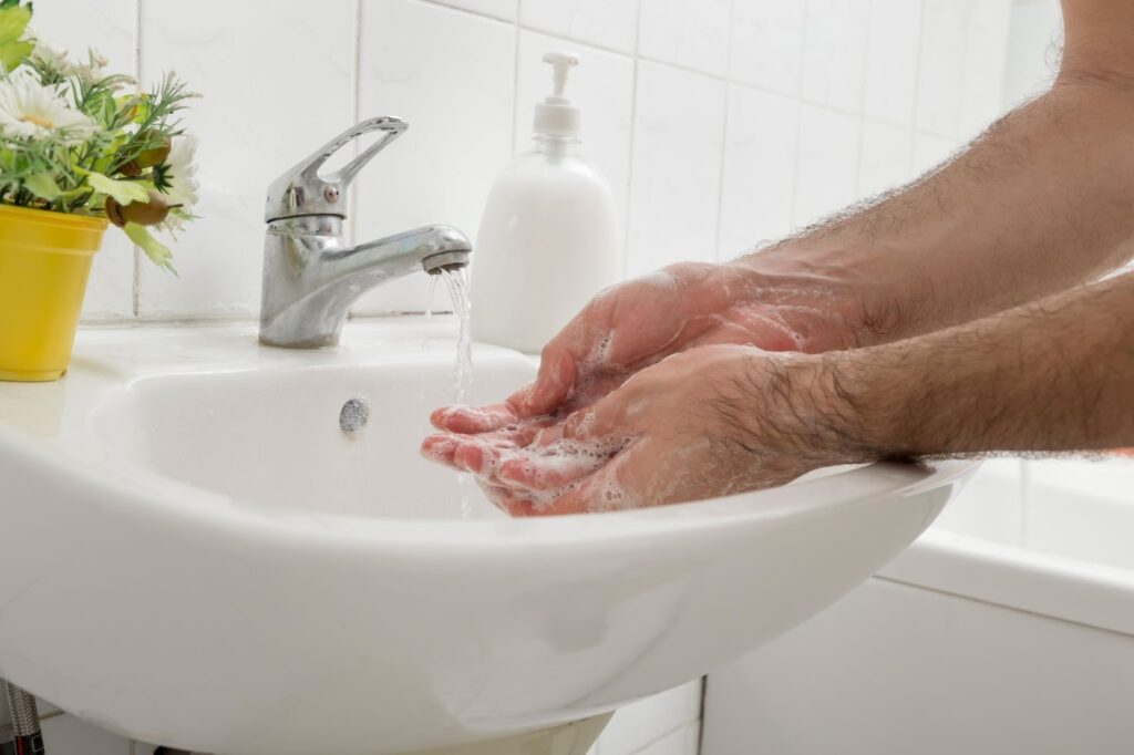 Wash your hands with warm water and soap for at least 20 seconds, especially after going out in public or touching shared objects. If you can’t access soap and water, a hand sanitizer with at least 60% alcohol is a good backup.